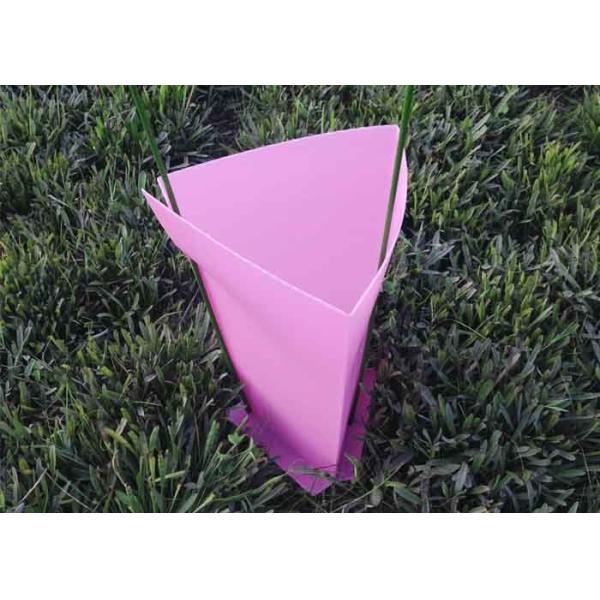 Semi- transparent color, Australian Made triangular corflute tree guard in a variety of sizes, complete with a unique tab system allowing the guard to be opened up, laid flat for storage and re-used. With a high UV grade additive to ensure a long life for the application of tree guards in the harsh Australian environment.